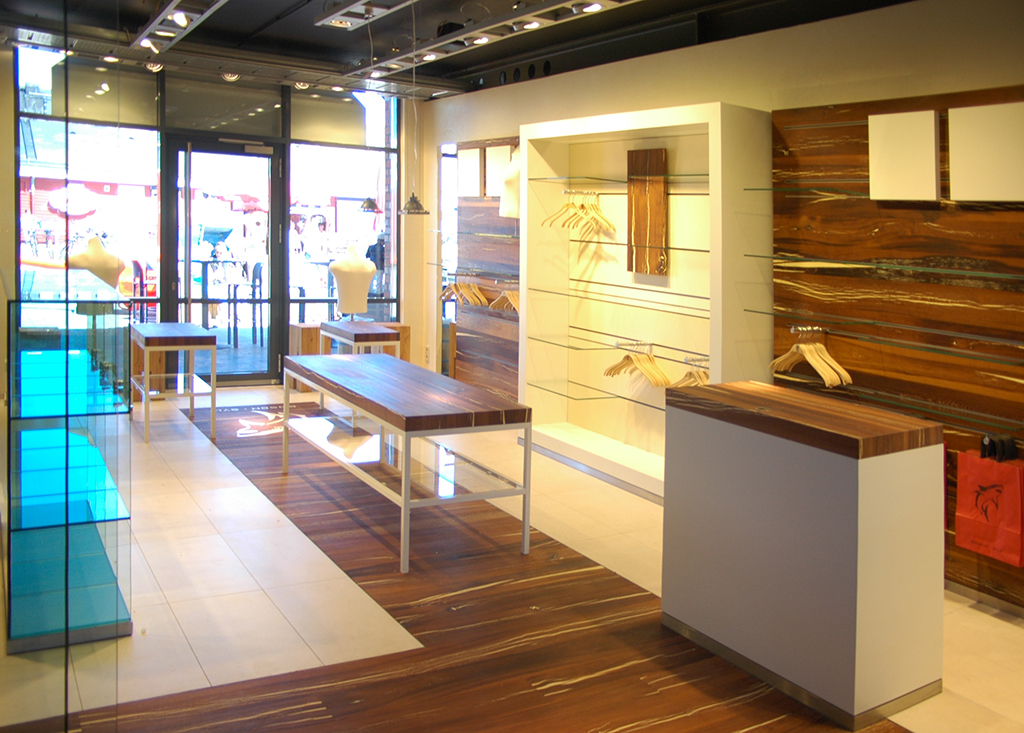 Die Firma Gosch erweitert ihr Sortiment an Merchandise-Produkten. Neu im Angebot ist hochwertige Bekleidung. Eine neu zu entwickelnde Produktpräsentation soll die Ware in den Vordergrund stellen. Ihre hohe Qualität wird durch edle, sorgfältig aufeinander abgestimmten Materialien wirkungsvoll in Szene gesetzt. Der Entwurf ist in hohem Maße flexibel einsetzbar.